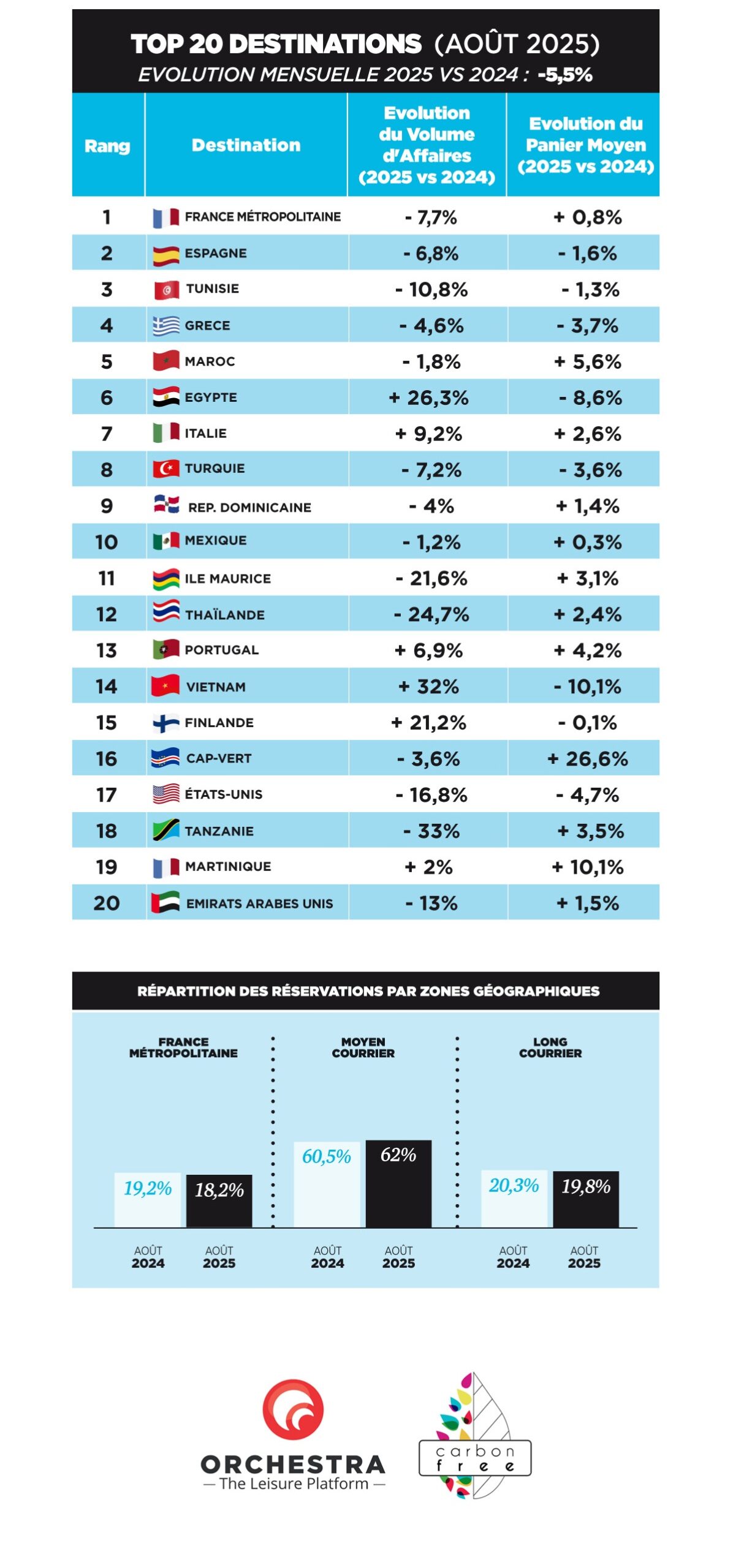 - Baromètre Orchestra : le top 20 des destinations en juillet 2025