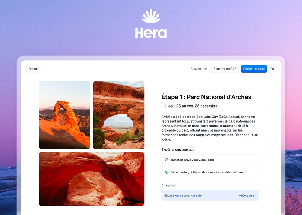 Lancée début 2018 par Axel Guidicelli et Lancelot Hardel, Ulysse annonce près de millions d’euros de ventes en 2024. La jeune entreprise avait décidé de travailler avec les influenceurs, mais elle a décidé de mettre ce projet « compliqué » sur pause afin de se recentrer sur Hera. Les agences peuvent d’ailleurs tester gratuitement cet outil sur hera.travel.