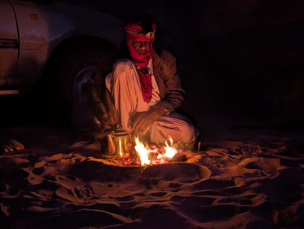 MZ : Ce qui me rend heureux dans le désert, c’est le silence, l’espace et le feu du soir, autour duquel on raconte des histoires en buvant les trois thés.
